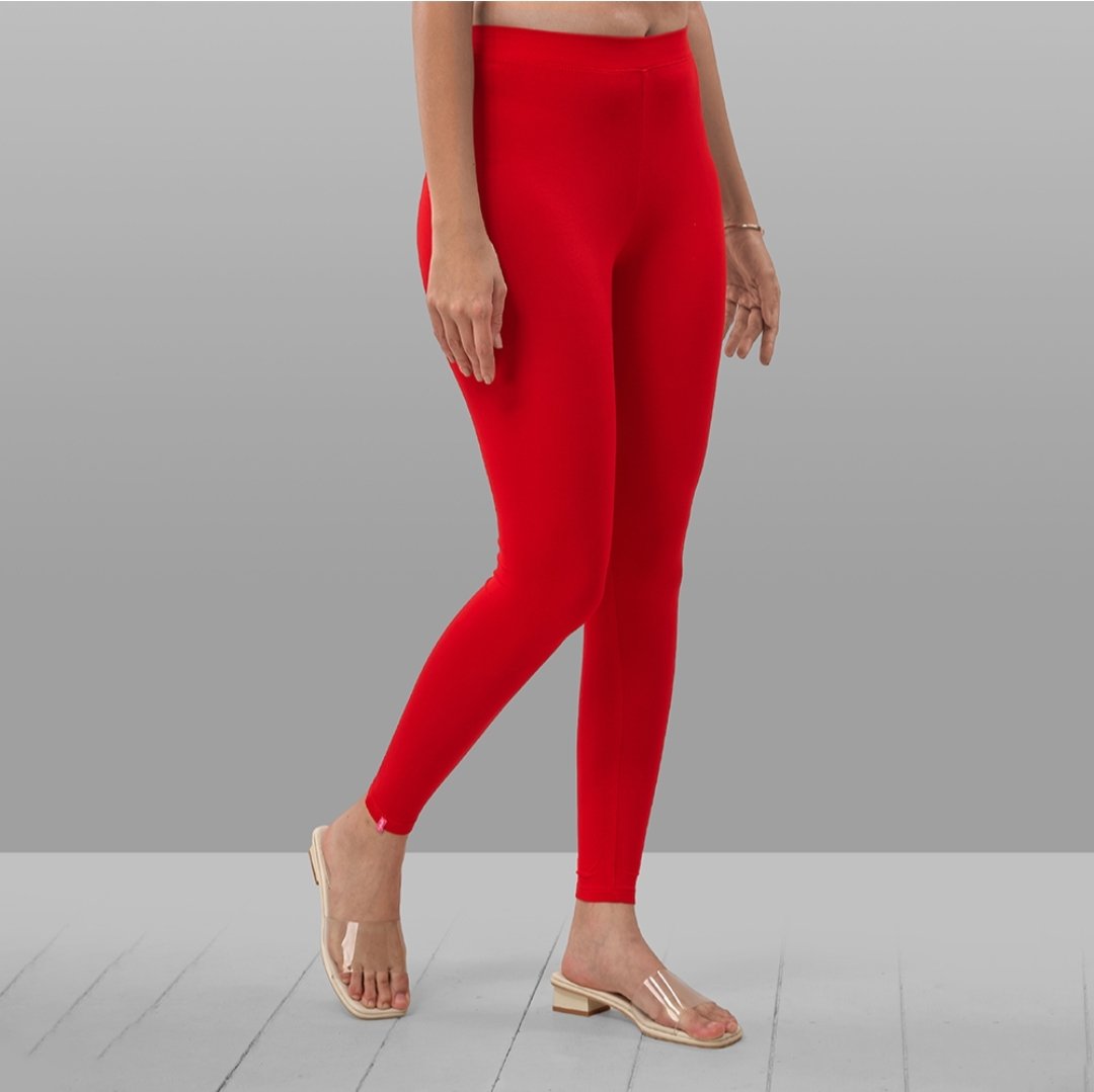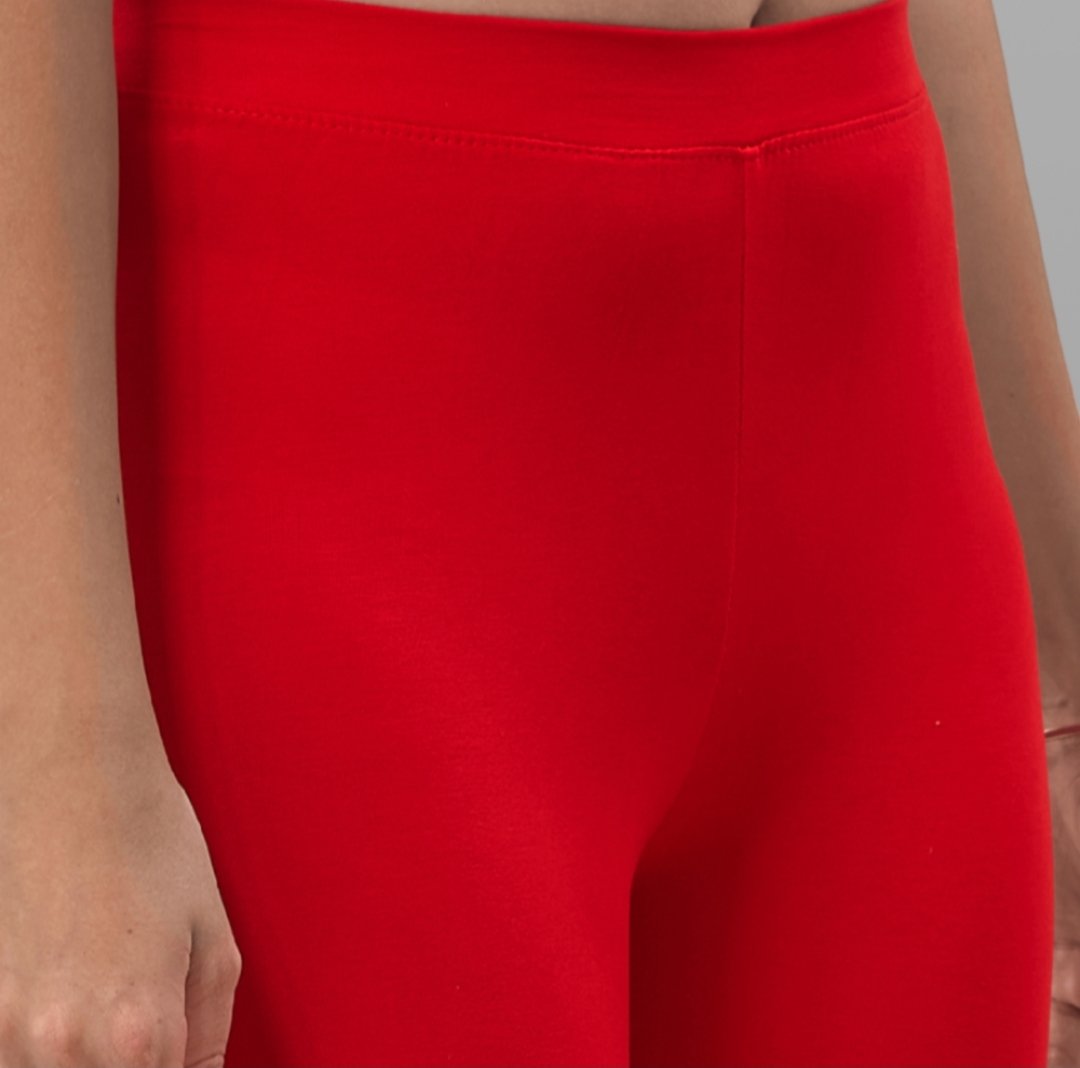 Complete any look, be it traditional or western with these Solid Red Leggings. Made from cotton & elastane, it has a elasticised waistband & has a slim fit and Ankle length