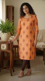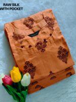 Elevate your ethnic wardrobe with this elegant off-white raw silk kurti. Crafted from premium raw silk, it features a delicate Orange Color with Coffee Brown hand paint design that adds a subtle yet striking charm. Perfect for festive occasions, casual outings, or office wear, this kurti combines comfort with sophistication.
