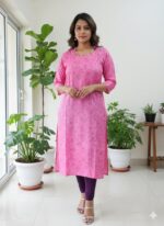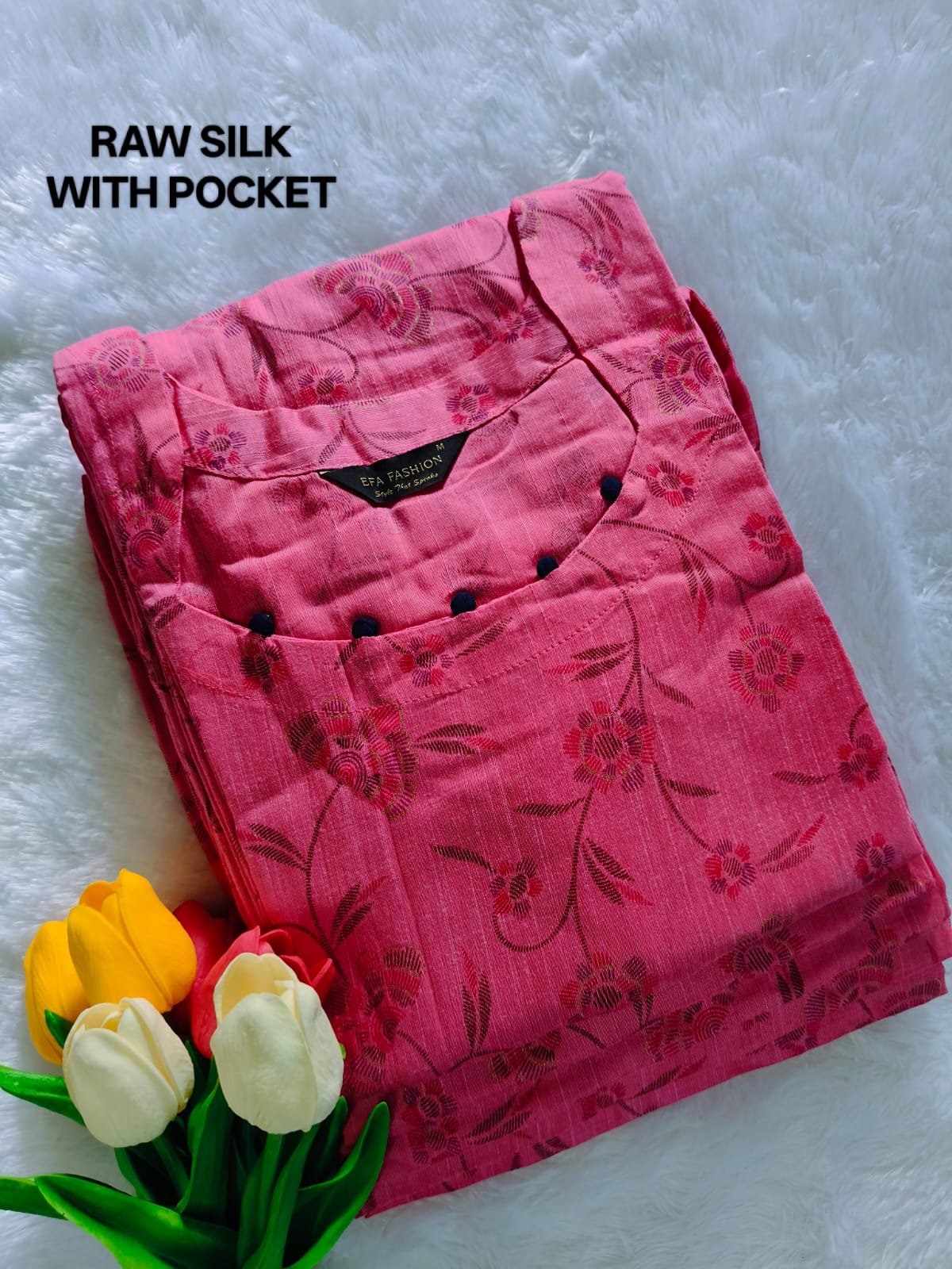 Elevate your ethnic wardrobe with this elegant off-white raw silk kurti. Crafted from premium raw silk, it features a delicate pink that adds a subtle yet striking charm. Perfect for festive occasions, casual outings, or office wear, this kurti combines comfort with sophistication.