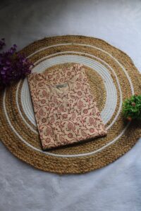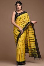 Kota Staple Silk is a blend of cotton and silk yarns, giving the saree both strength and sheen. It’s woven in the traditional Kota Doria style, which means it has a lightweight, airy texture with small square patterns (called khats).