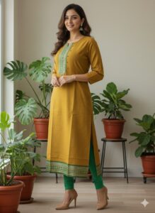 Use Coupon Code FLAT50 for free Shipping Upgrade your wardrobe with our Vatican A-line Co-ord Set, designed for women who love comfort and effortless style. The top comes in a flattering A-line silhouette with a 44+ length, offering perfect coverage and a graceful look. It is paired with a 39+ length pant that provides a sleek, comfortable fit for all-day wear.